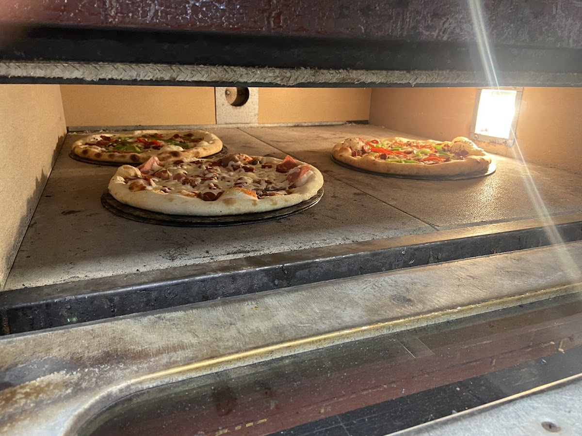 Excellent pizzas, fresh and quick. We bought two senior pizzas and got a third pizza free. Absolute bargain! The service was great. We got a takeaway but there were some tables to sit in.